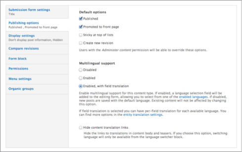 To get multilingual right, it’s critical that you configure your content-types and fields with care and precision and upfront, because if content is already in your database it is almost impossible to change these configurations.