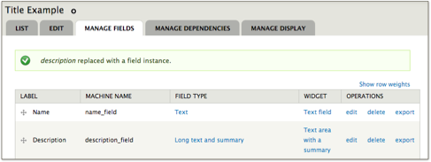 Beware that in other modules (Views and Search API) you should use these new fields (‘title_field’, ‘name_field’, ‘description_field’), instead of the usual 'title'.